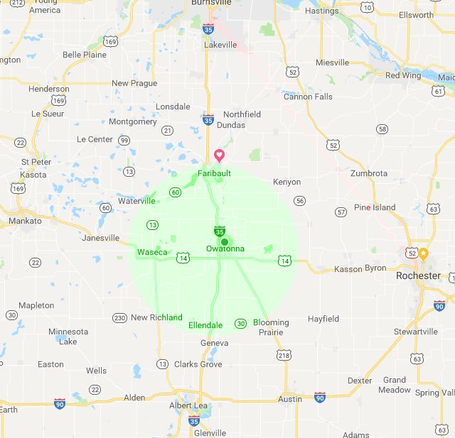 No Travel Charges within Green shaded area all other areas $2.00 per mile